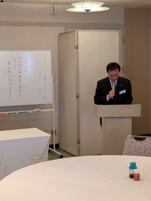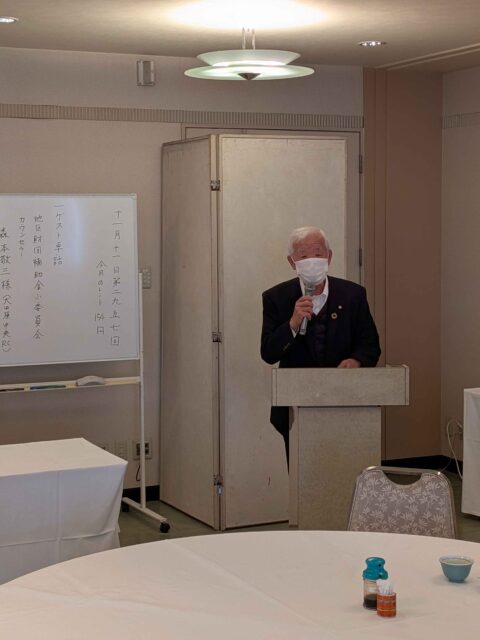 ●若菜会員…森本様、卓話よろしくお願いします ●松崎会員…森本財団カウンセラー、本日はどうぞよろしくお願いします ●平野会員 ●早乙女会員…地区財団委員会カウンセラー森本様 本日はよろしくお願いします ●毛塚会員 ●森本敬三様 ●針谷会員…森本様、お話し楽しみにしています ●堀越会員…森本カウンセラーありがとうございます ●狐塚会員…森本様ようこそ ●谷中会員 ●金子会員 ●髙田会員